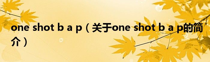 本文關于one shot b a p的簡介就講解完畢,希望對大家有所幫助。
