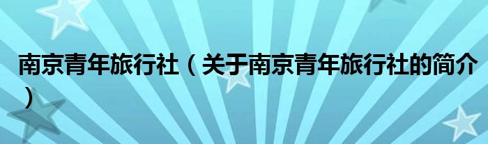 本文關于南京青年旅行社的簡介就講解完畢,希望對大家有所幫助。
