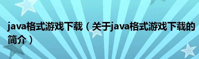 本文關于java格式游戲下載的簡介就講解完畢,希望對大家有所幫助。