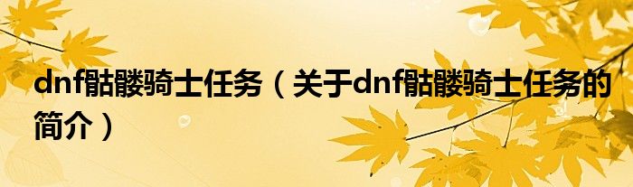 本文關(guān)于dnf骷髏騎士任務(wù)的簡介就講解完畢,希望對大家有所幫助。