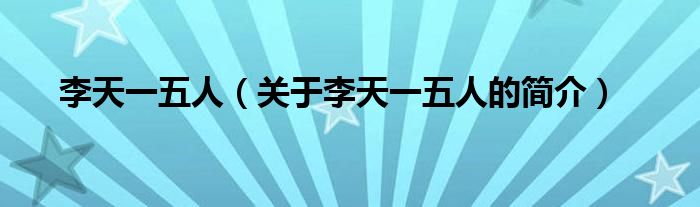 大家好,李天一五人,關于李天一五人的簡介很多人還不知道,現在讓我們一起來看看吧!