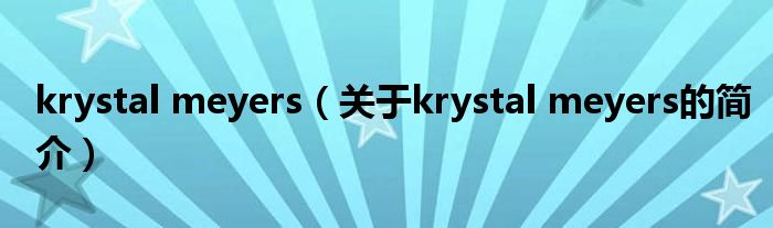 本文關于krystal meyers的簡介就講解完畢,希望對大家有所幫助。