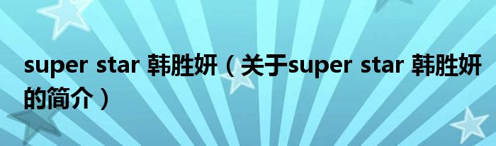 本文關(guān)于super star 韓勝妍的簡介就講解完畢,希望對大家有所幫助。