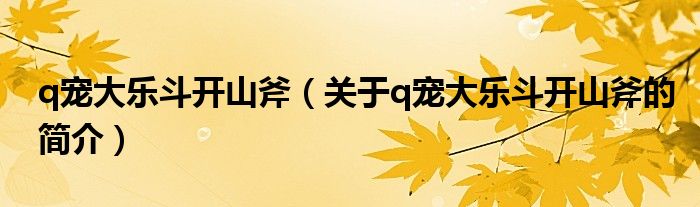 本文關于q寵大樂斗開山斧的簡介就講解完畢,希望對大家有所幫助。
