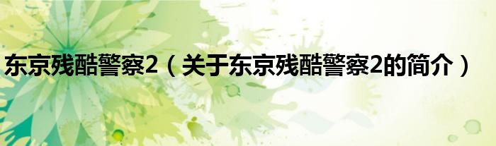 大家好,東京殘酷警察2,關于東京殘酷警察2的簡介很多人還不知道,現在讓我們一起來看看吧!