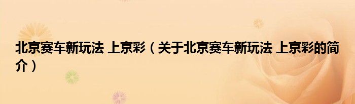 本文關(guān)于北京賽車新玩法 上京彩的簡介就講解完畢,希望對大家有所幫助。