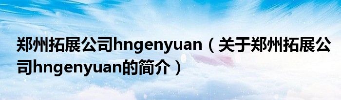 本文關于鄭州拓展公司hngenyuan的簡介就講解完畢,希望對大家有所幫助。
