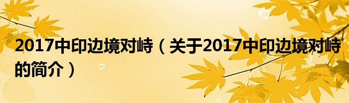 本文關于2017中印邊境對峙的簡介就講解完畢,希望對大家有所幫助。