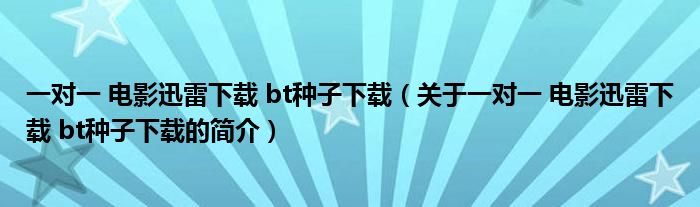 本文關于一對一 電影迅雷下載 bt種子下載的簡介就講解完畢,希望對大家有所幫助。
