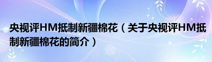 本文關(guān)于央視評(píng)HM抵制新疆棉花的簡(jiǎn)介就講解完畢,希望對(duì)大家有所幫助。