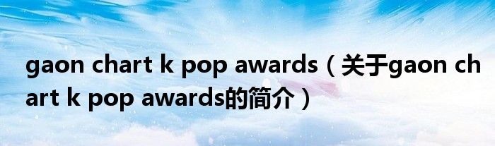 本文關(guān)于gaon chart k pop awards的簡介就講解完畢,希望對大家有所幫助。