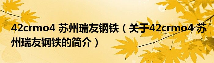 本文關于42crmo4 蘇州瑞友鋼鐵的簡介就講解完畢,希望對大家有所幫助。