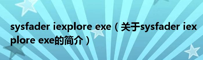 本文關(guān)于sysfader iexplore exe的簡(jiǎn)介就講解完畢,希望對(duì)大家有所幫助。