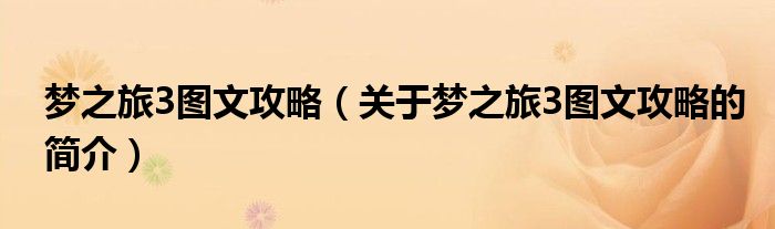 本文關于夢之旅3圖文攻略的簡介就講解完畢,希望對大家有所幫助。