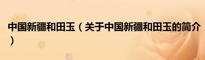 本文關于中國新疆和田玉的簡介就講解完畢,希望對大家有所幫助。