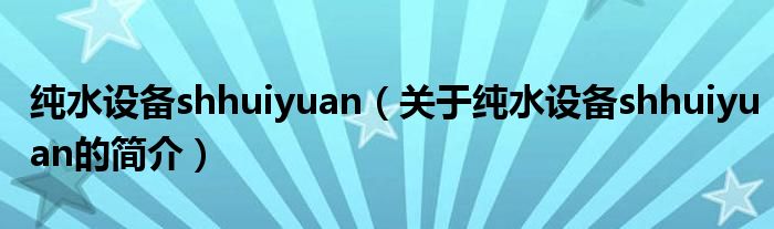 大家好,純水設(shè)備shhuiyuan,關(guān)于純水設(shè)備shhuiyuan的簡介很多人還不知道,現(xiàn)在讓我們一起來看看吧!