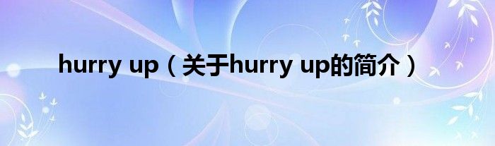 本文關于hurry up的簡介就講解完畢,希望對大家有所幫助。