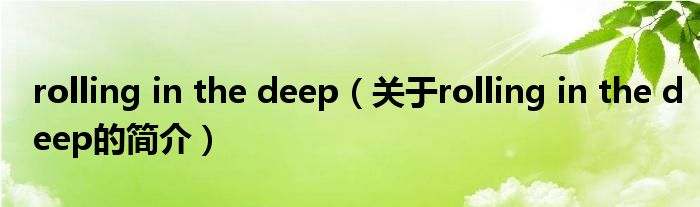 本文關于rolling in the deep的簡介就講解完畢,希望對大家有所幫助。