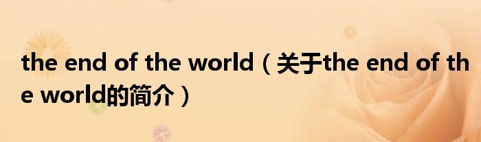 大家好,the end of the world,關于the end of the world的簡介很多人還不知道,現在讓我們一起來看看吧!