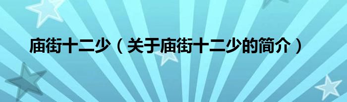 本文關于廟街十二少的簡介就講解完畢,希望對大家有所幫助。