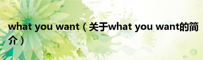 大家好,what you want,關于what you want的簡介很多人還不知道,現在讓我們一起來看看吧!