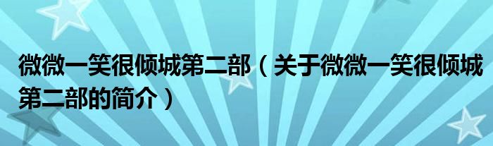 大家好,微微一笑很傾城第二部,關于微微一笑很傾城第二部的簡介很多人還不知道,現在讓我們一起來看看吧!
