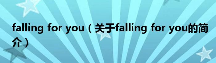 本文關于falling for you的簡介就講解完畢,希望對大家有所幫助。