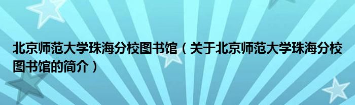 本文關于北京師范大學珠海分校圖書館的簡介就講解完畢,希望對大家有所幫助。