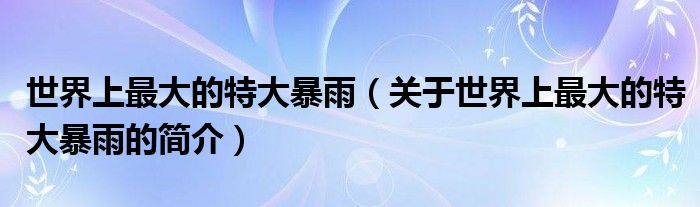 本文關于世界上最大的特大暴雨的簡介就講解完畢,希望對大家有所幫助。
