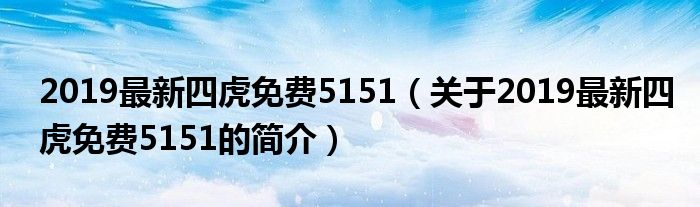 本文關于2019最新四虎免費5151的簡介就講解完畢,希望對大家有所幫助。