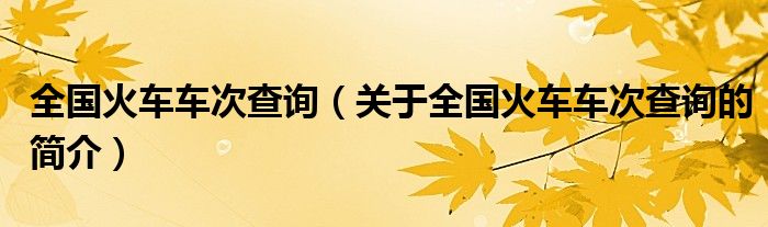 本文關(guān)于全國火車車次查詢的簡(jiǎn)介就講解完畢,希望對(duì)大家有所幫助。