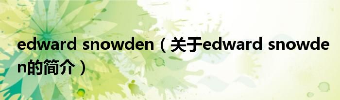 大家好,edward snowden,關于edward snowden的簡介很多人還不知道,現在讓我們一起來看看吧!