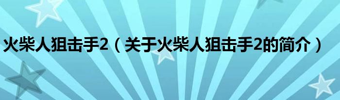 本文關于火柴人狙擊手2的簡介就講解完畢,希望對大家有所幫助。