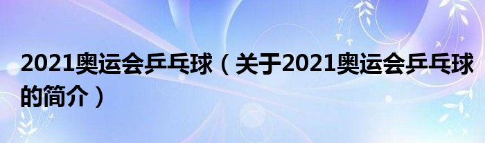 本文關于2021奧運會乒乓球的簡介就講解完畢,希望對大家有所幫助。