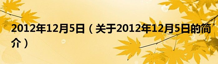 大家好,2012年12月5日,關于2012年12月5日的簡介很多人還不知道,現(xiàn)在讓我們一起來看看吧!