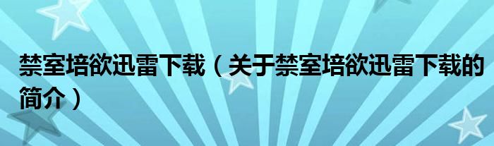 本文關(guān)于禁室培欲迅雷下載的簡介就講解完畢,希望對大家有所幫助。