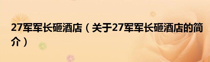 本文關于27軍軍長砸酒店的簡介就講解完畢,希望對大家有所幫助。