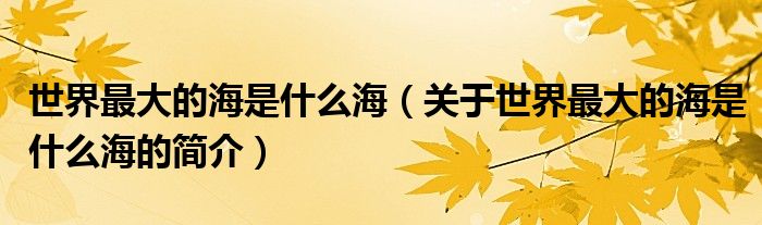 本文關于世界最大的海是什么海的簡介就講解完畢,希望對大家有所幫助。