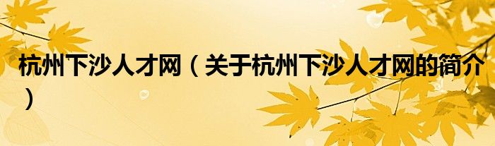 本文關(guān)于杭州下沙人才網(wǎng)的簡介就講解完畢,希望對大家有所幫助。