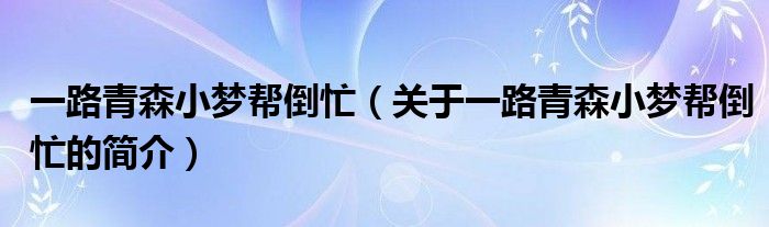 大家好,一路青森小夢幫倒忙,關于一路青森小夢幫倒忙的簡介很多人還不知道,現在讓我們一起來看看吧!