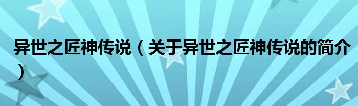 大家好,異世之匠神傳說,關于異世之匠神傳說的簡介很多人還不知道,現在讓我們一起來看看吧!