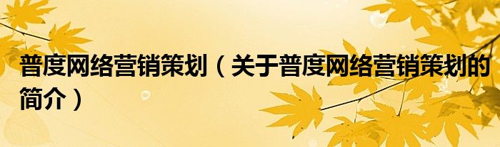 本文關(guān)于普度網(wǎng)絡(luò)營銷策劃的簡介就講解完畢,希望對大家有所幫助。