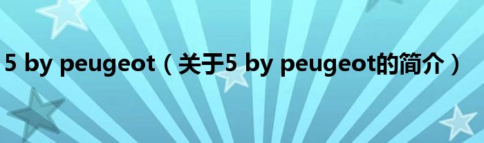 大家好,5 by peugeot,關(guān)于5 by peugeot的簡介很多人還不知道,現(xiàn)在讓我們一起來看看吧!