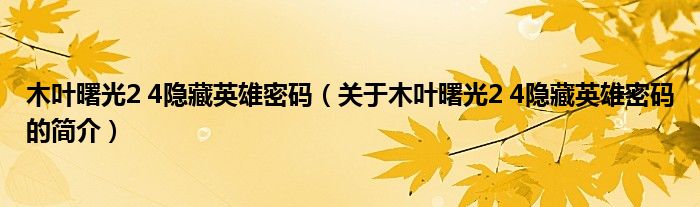 本文關于木葉曙光2 4隱藏英雄密碼的簡介就講解完畢,希望對大家有所幫助。