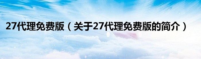 本文關于27代理免費版的簡介就講解完畢,希望對大家有所幫助。