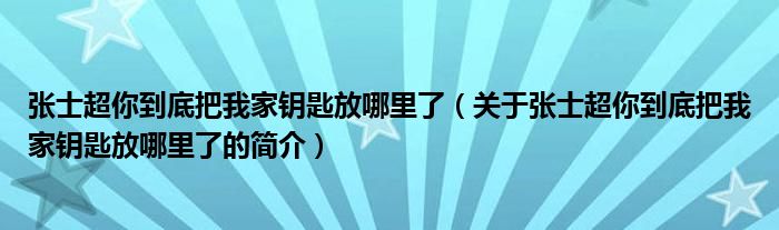 本文關(guān)于張士超你到底把我家鑰匙放哪里了的簡(jiǎn)介就講解完畢,希望對(duì)大家有所幫助。