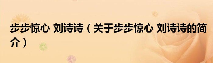 本文關于步步驚心 劉詩詩的簡介就講解完畢,希望對大家有所幫助。