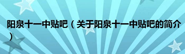 本文關于陽泉十一中貼吧的簡介就講解完畢,希望對大家有所幫助。