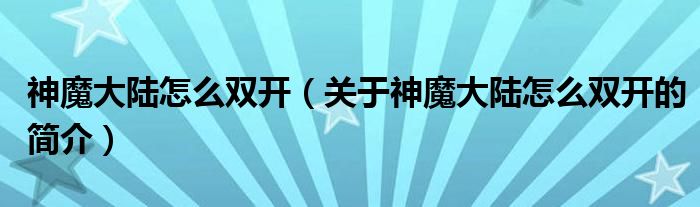 本文關于神魔大陸怎么雙開的簡介就講解完畢,希望對大家有所幫助。