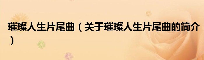 本文關于璀璨人生片尾曲的簡介就講解完畢,希望對大家有所幫助。